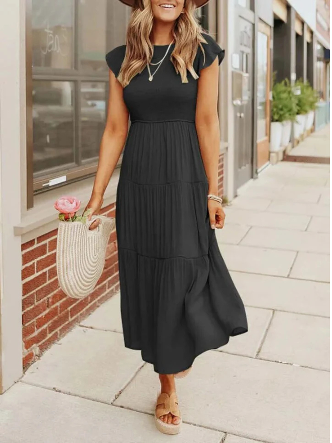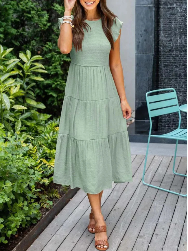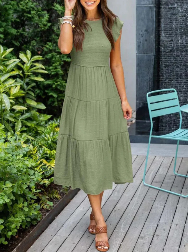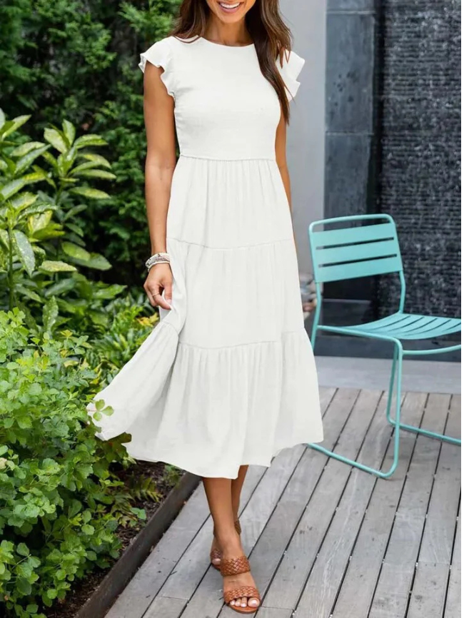 Das Elina Kleid verbindet fließende Silhouetten mit cleverem Design und verleiht jedem Outfit eine dezente Raffinesse. Durch die weich fallende Stoffführung und den bauchumspielenden Schnitt entsteht ein schmeichelhafter Look, der sich sowohl für besondere Anlässe als auch für den Alltag eignet. Elina steht für Selbstbewusstsein, Weiblichkeit und die Freiheit, sich in jedem Moment stilvoll zu bewegen.